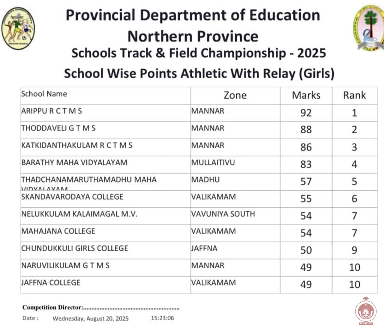 Northern Province School Track & Field Championship 2025