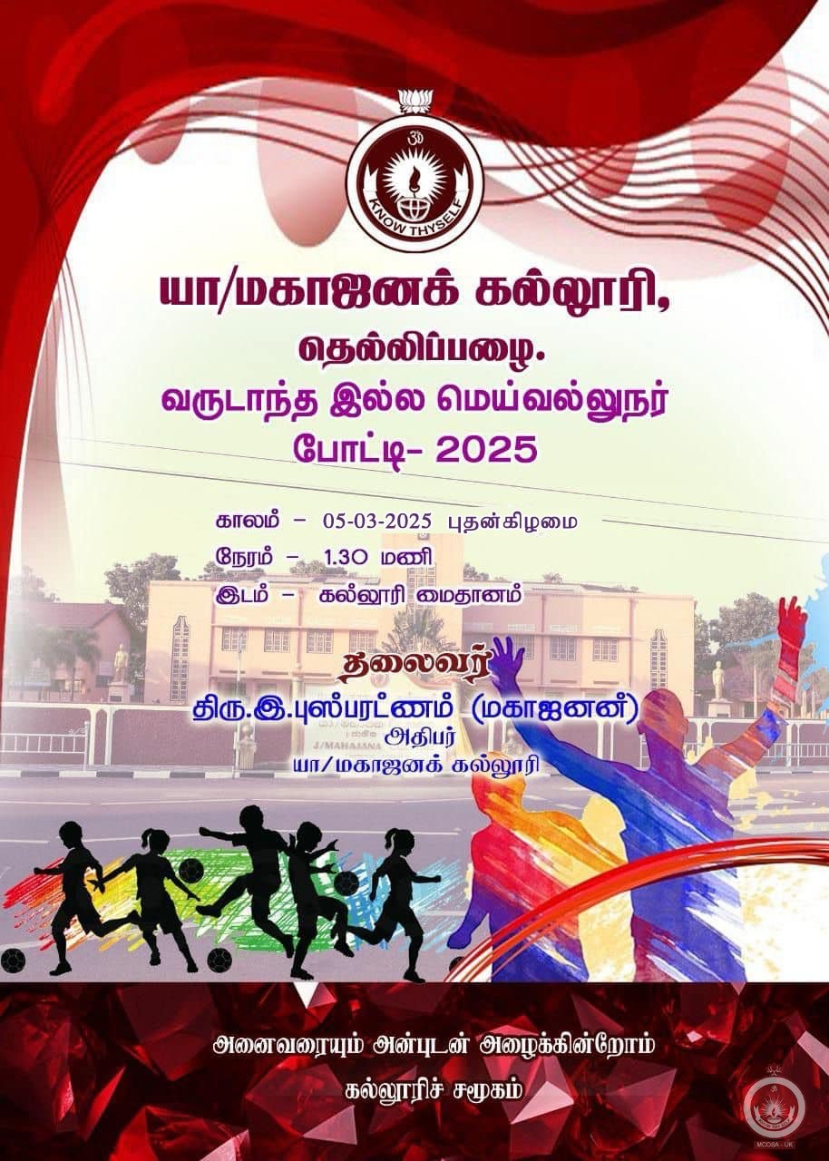 மழை காரணமாக இடைநிறுத்தப்பட்ட இல்ல மெய்வல்லுநர் போட்டி நாளை 05.03.2025 புதன்கிழமையும், நாளை மறுதினம் 06.03.2025 வியாழக்கிழமையும் நடைபெறவுள்ளது.